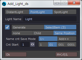 └ [Add++]は、Add_Light_dsを実行後に再度開くと、続きの番号からスタートすることが出来ます。
